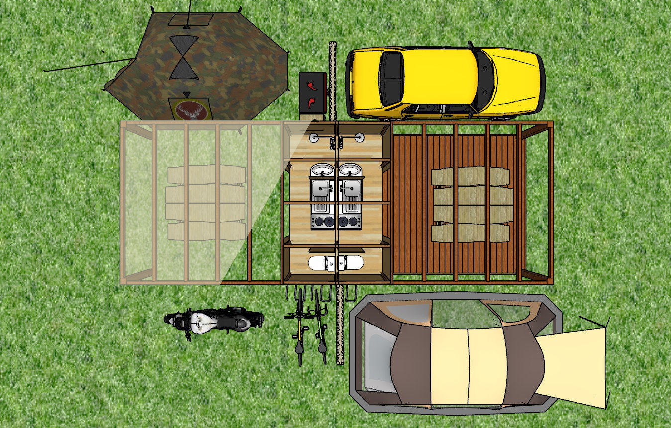 L’abri DuoCamp® est un ensemble en bois conçu et optimisé pour équiper deux emplacements de camping attenants en symétrie complète et en parfaite indépendance.