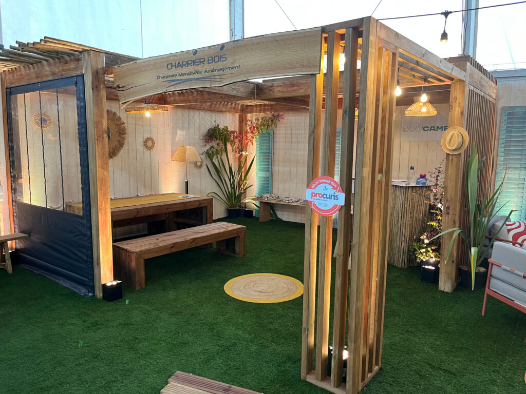 Enfin, nous sommes très fiers de la magnifique charpente montée tout spécialement pour les partenaires Procamping. Un grand succès auprès de nos visiteurs !